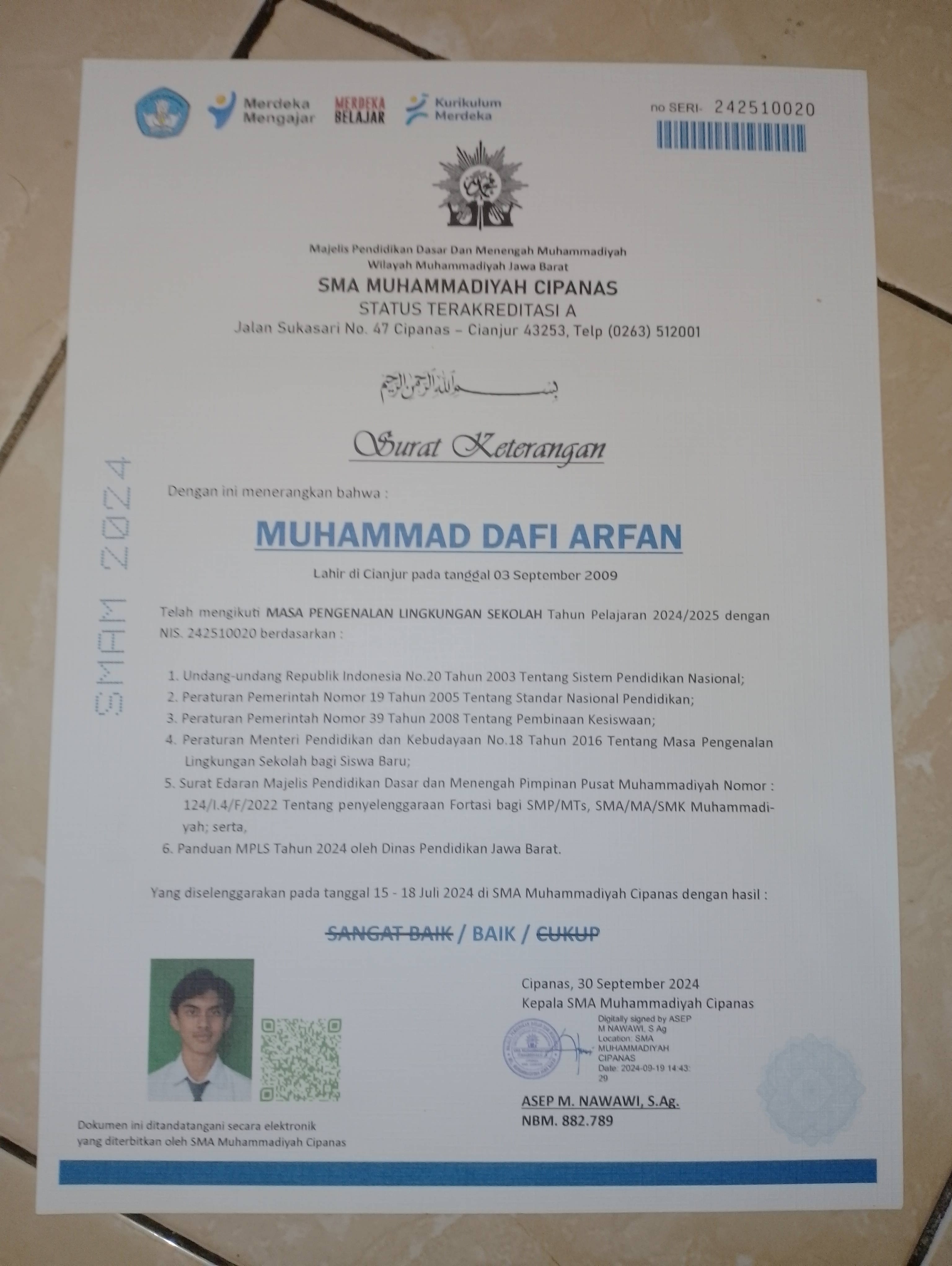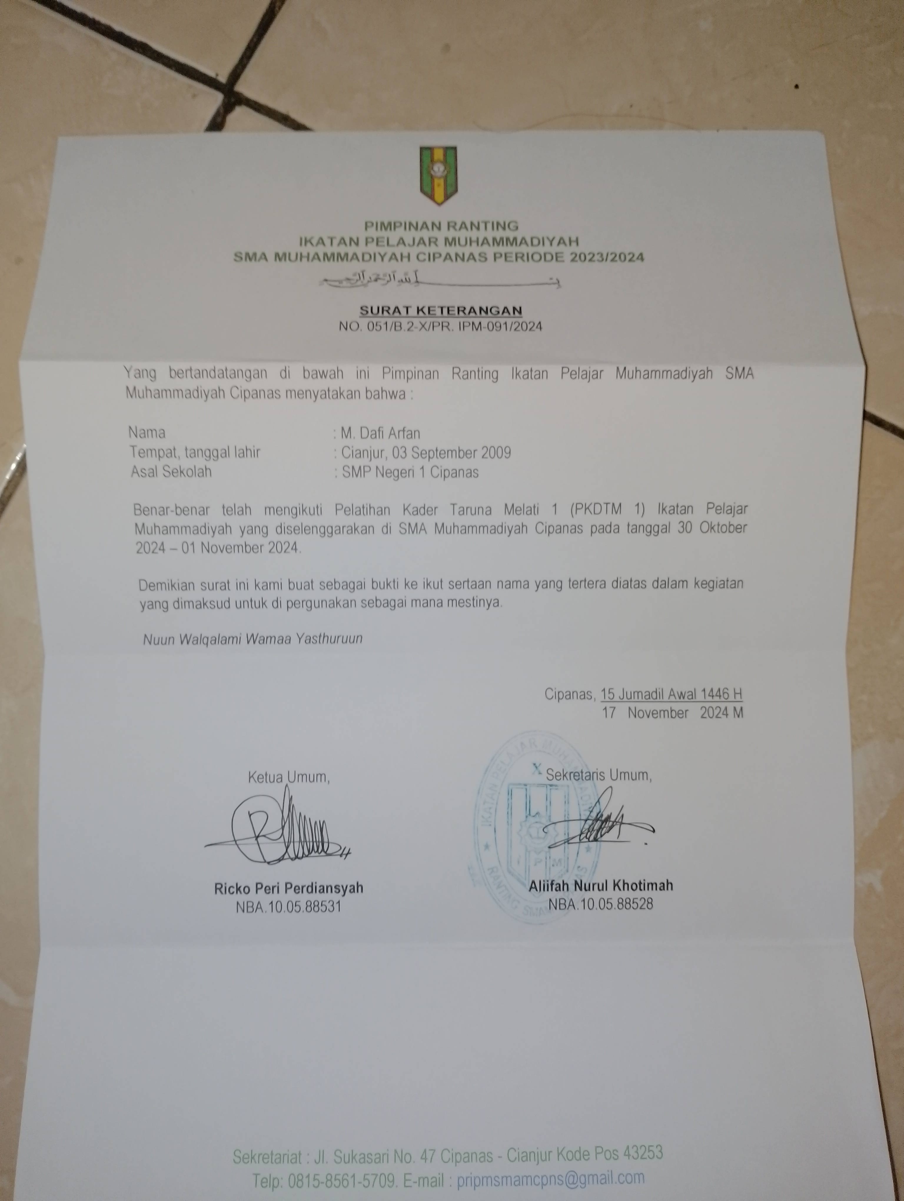 Terverifikasi = Riwayat terverifikasi oleh pimpinan