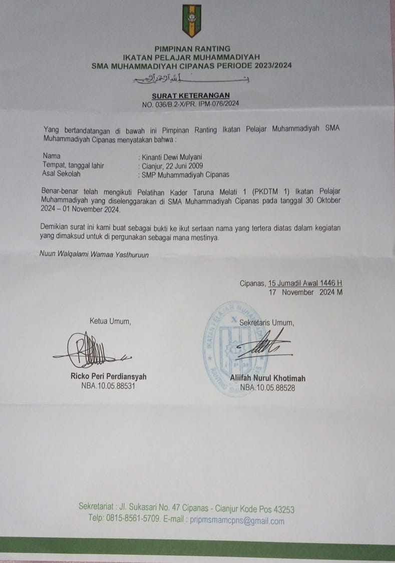 PR IPM SMA MUHAMMADIYAH SUKASARI