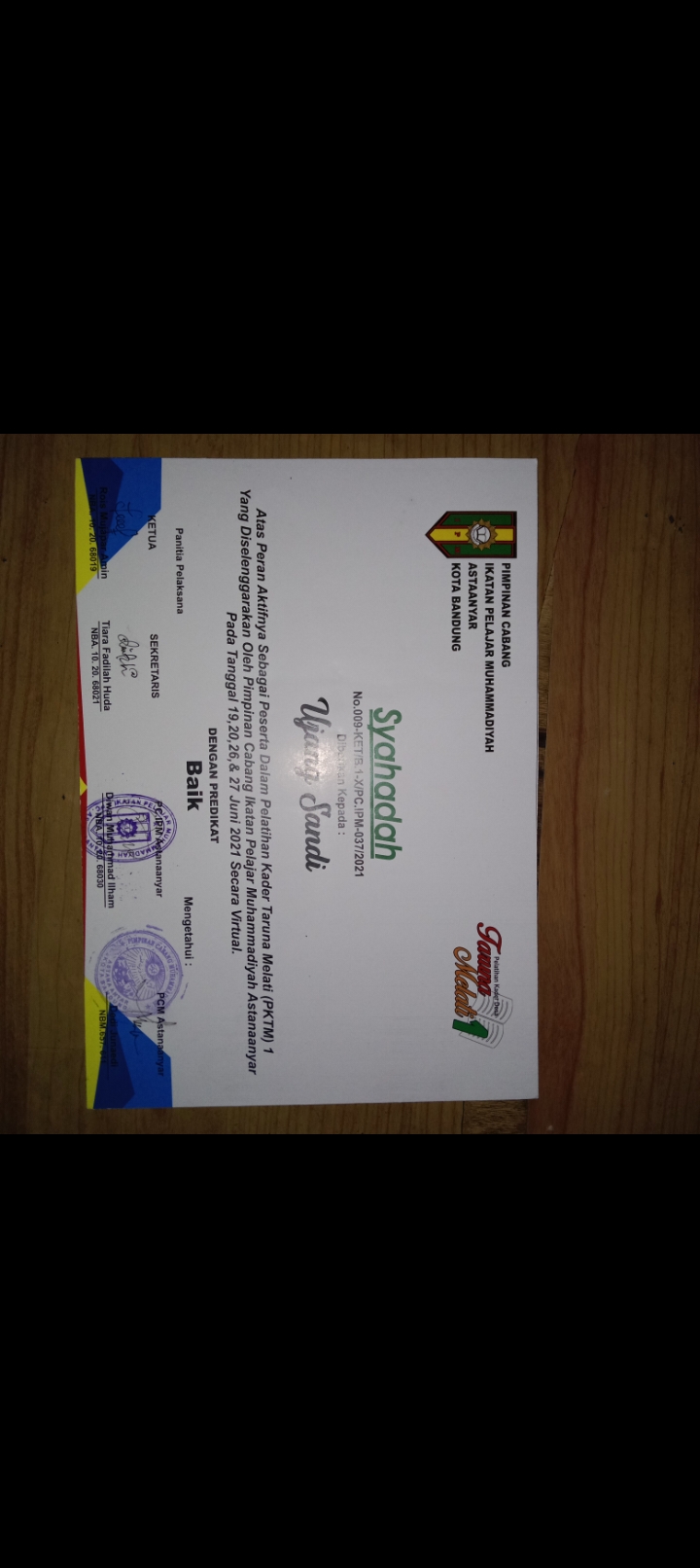 Tidak Valid = Riwayat tidak valid, karena pimpinan belum terdaftar di myipm/ pengakuan riwayat ditolak pimpinan