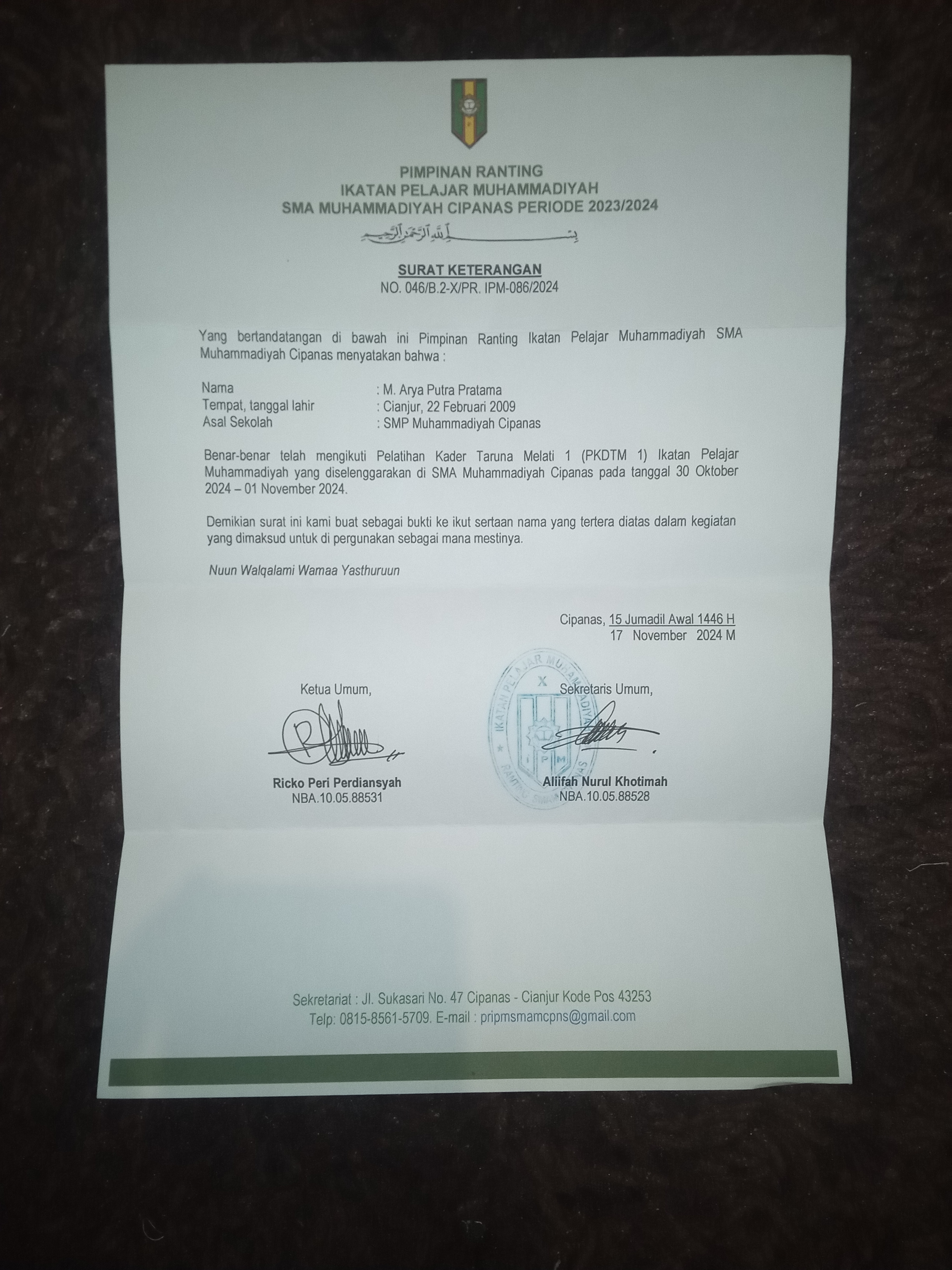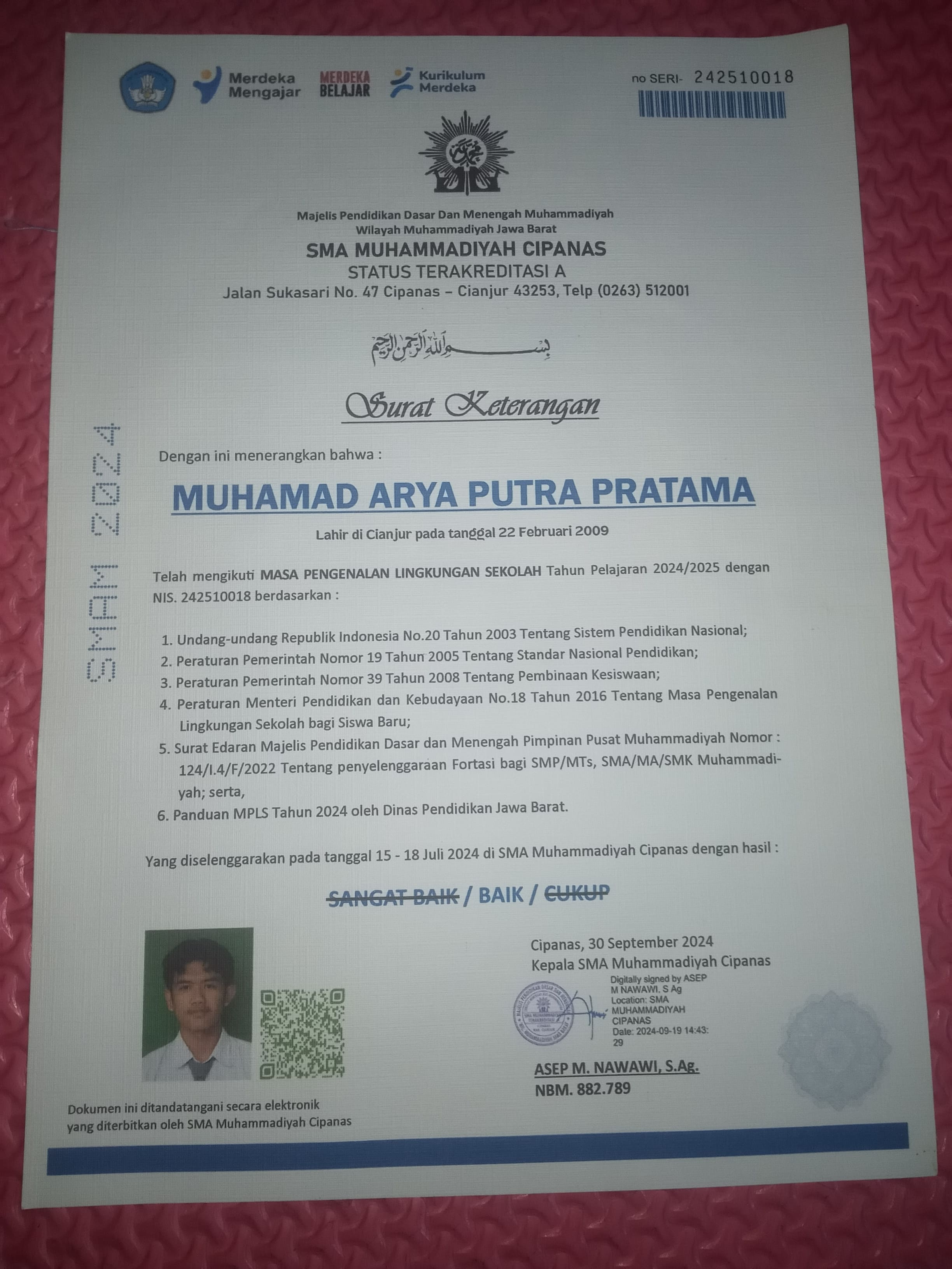 Terverifikasi = Riwayat terverifikasi oleh pimpinan