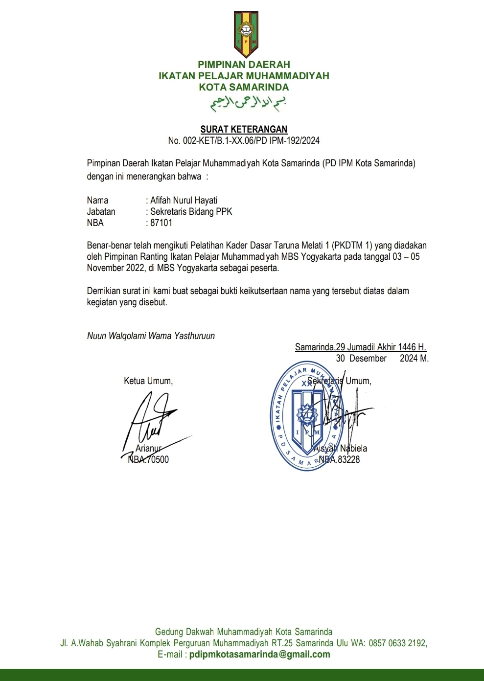 Tidak Valid = Riwayat tidak valid, karena pimpinan belum terdaftar di myipm/ pengakuan riwayat ditolak pimpinan