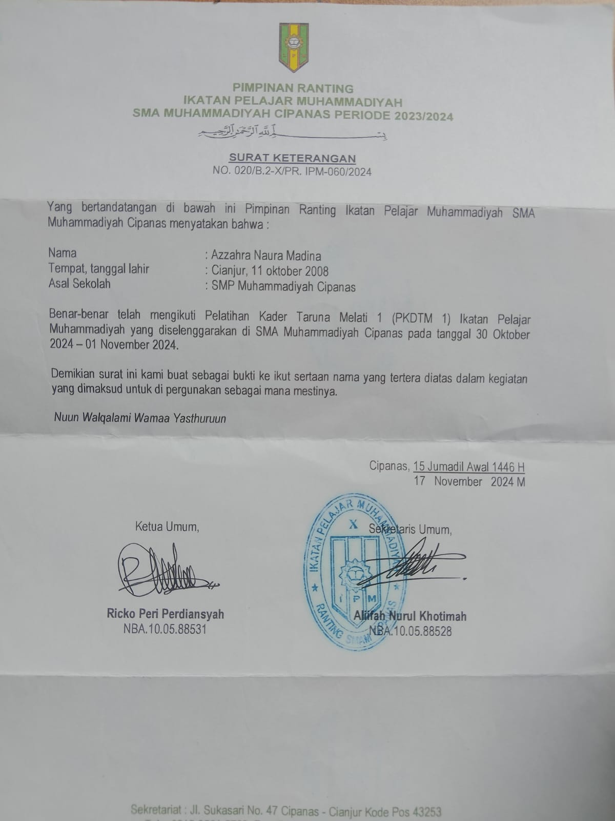 PR IPM SMA MUHAMMADIYAH SUKASARI