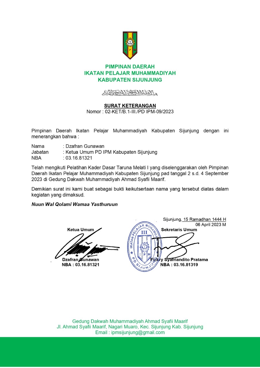 Terverifikasi = Riwayat terverifikasi oleh pimpinan