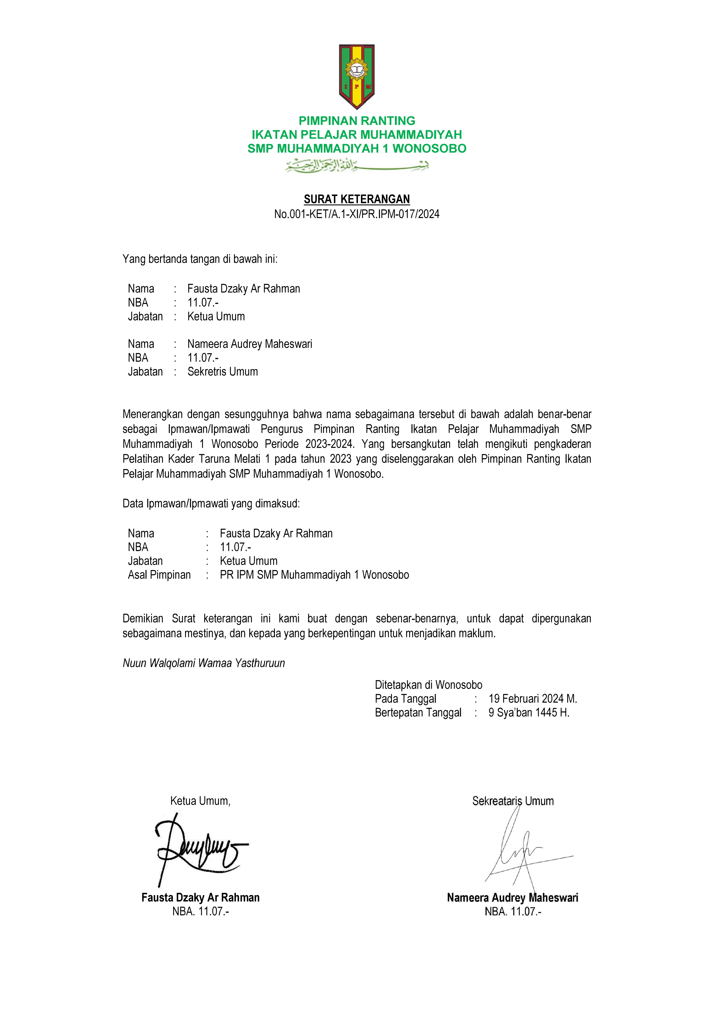 Tidak Valid = Riwayat tidak valid, karena pimpinan belum terdaftar di myipm/ pengakuan riwayat ditolak pimpinan