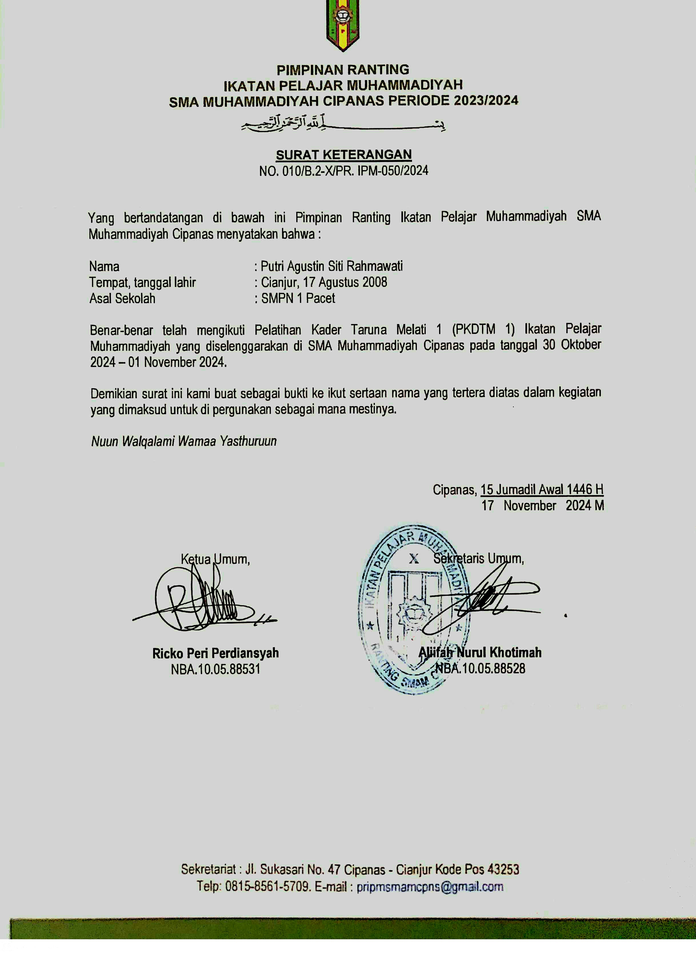 Tidak Valid = Riwayat tidak valid, karena pimpinan belum terdaftar di myipm/ pengakuan riwayat ditolak pimpinan