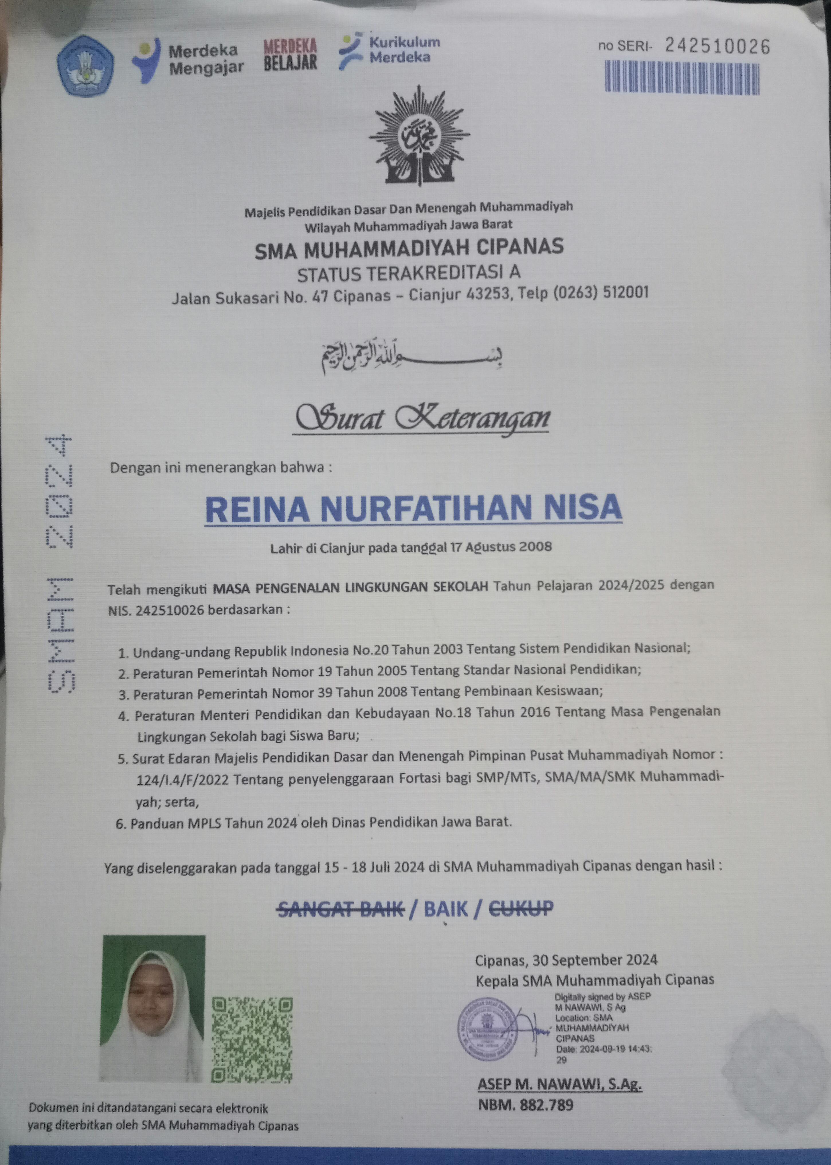 Terverifikasi = Riwayat terverifikasi oleh pimpinan