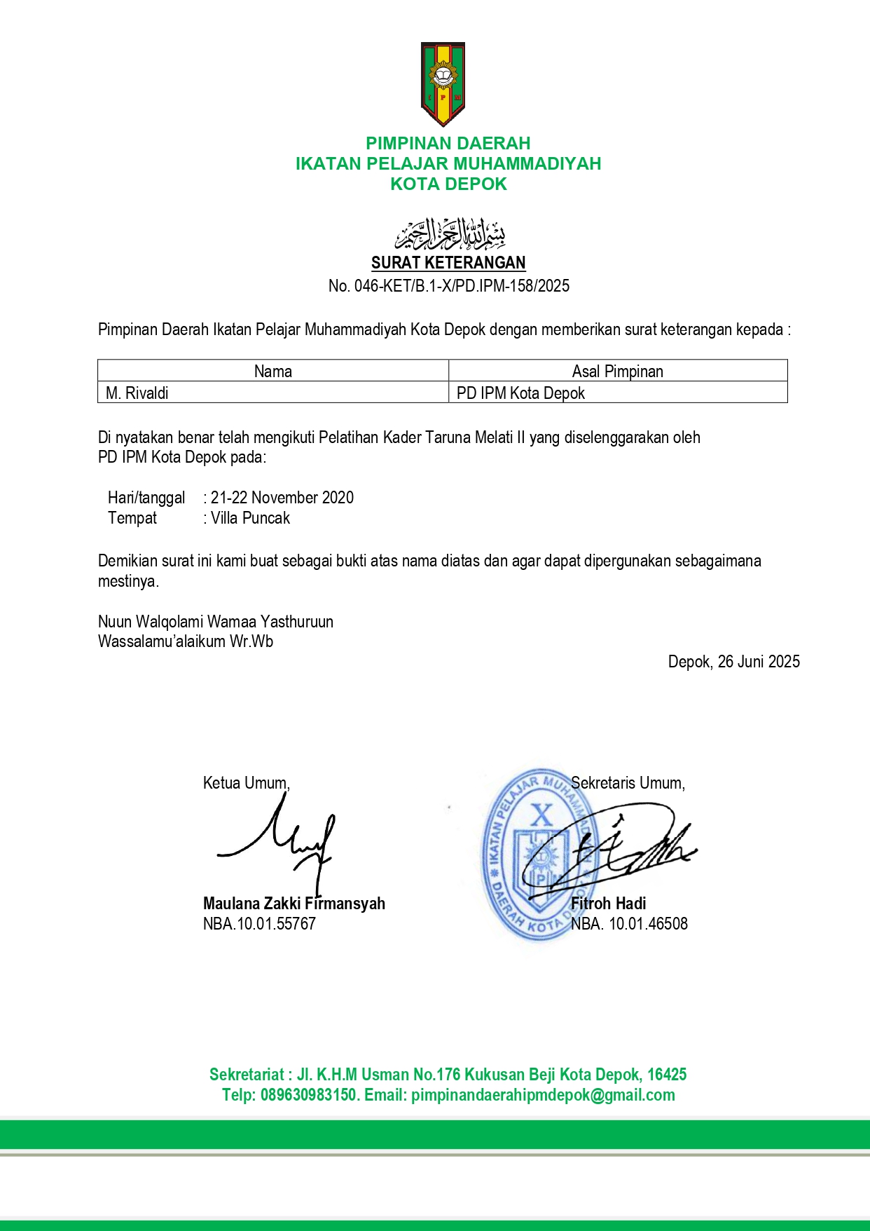 Tidak Valid = Riwayat tidak valid, karena pimpinan belum terdaftar di myipm/ pengakuan riwayat ditolak pimpinan
