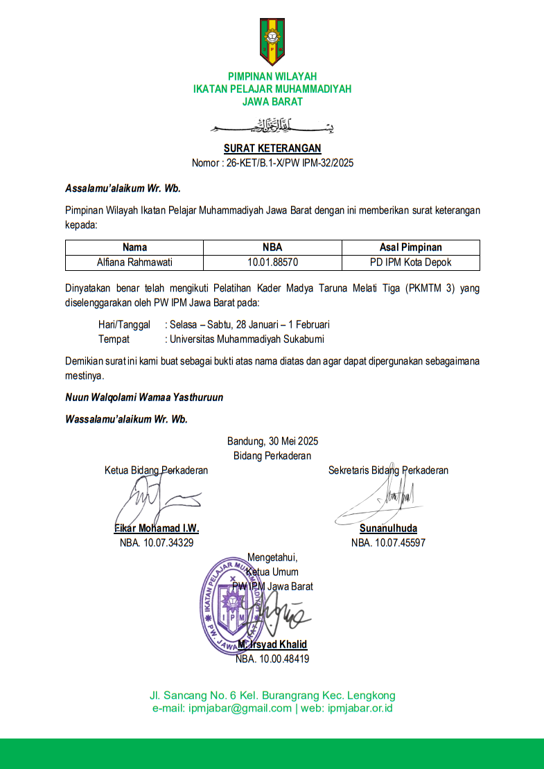 Tidak Valid = Riwayat tidak valid, karena pimpinan belum terdaftar di myipm/ pengakuan riwayat ditolak pimpinan